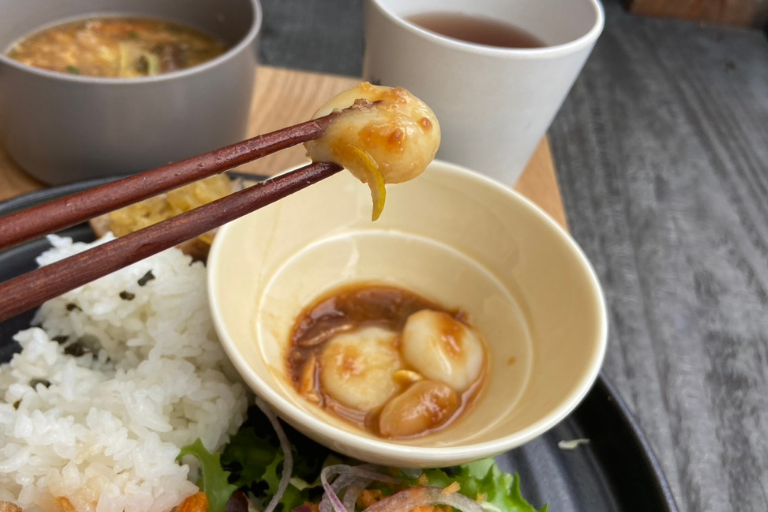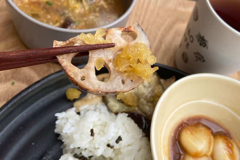 一般的な酸辣湯の酸っぱさに、「ニラ麹」の深みのある旨味が加わって、とてもまろやか。キノコや野菜の具材もたっぷりで、噛むほどに滋味深い味わいが広がるやさしいお味。